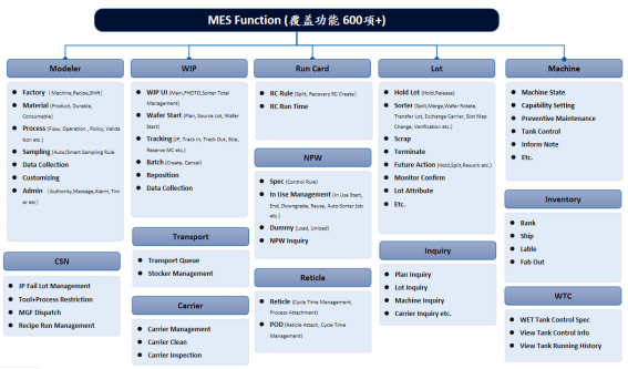 ● Lot、Carrier Cross FAB 管理:涵盖委内委外业务以及数据同步管理,保证跨区域生产过程中的数据一致性和业务协同性。